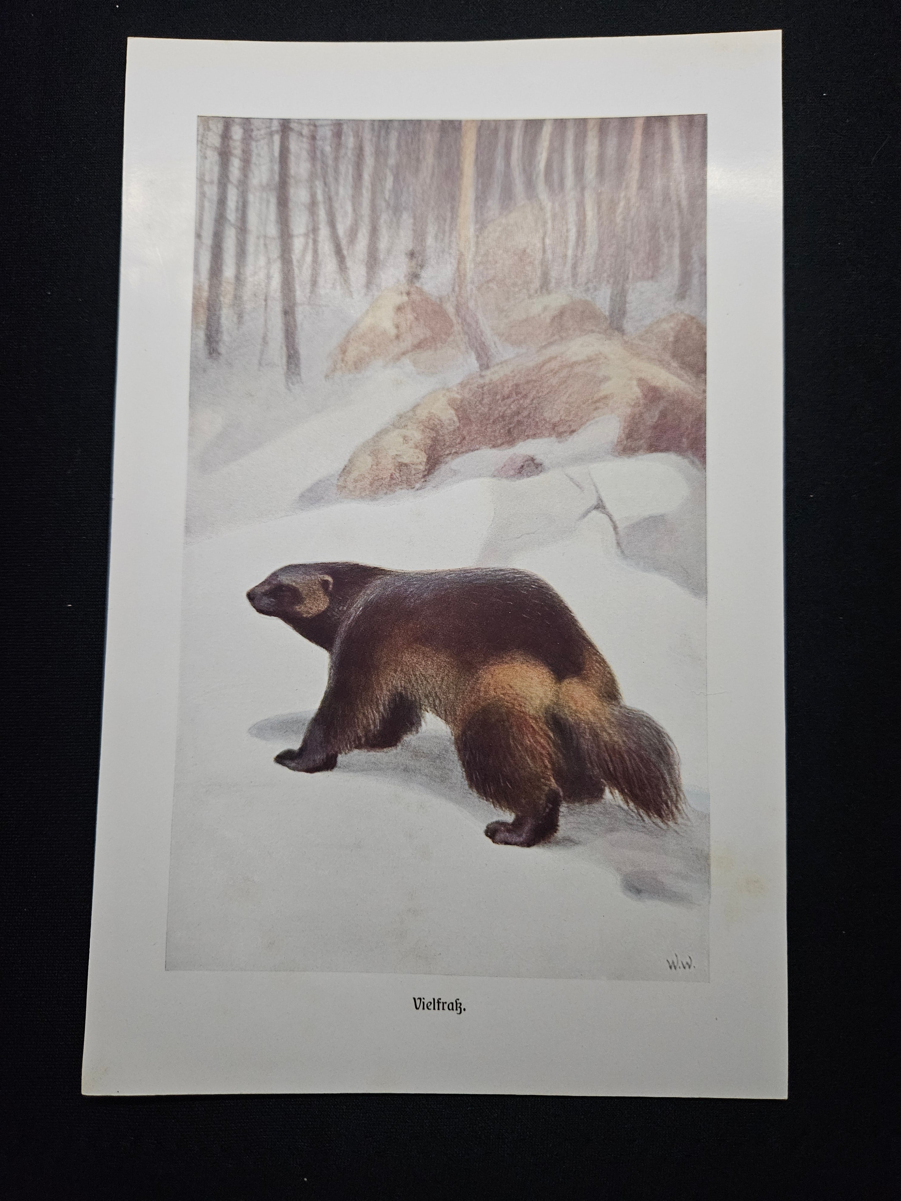 Genuine antique print of a Wolverine, taken from an already damaged 1930's book.