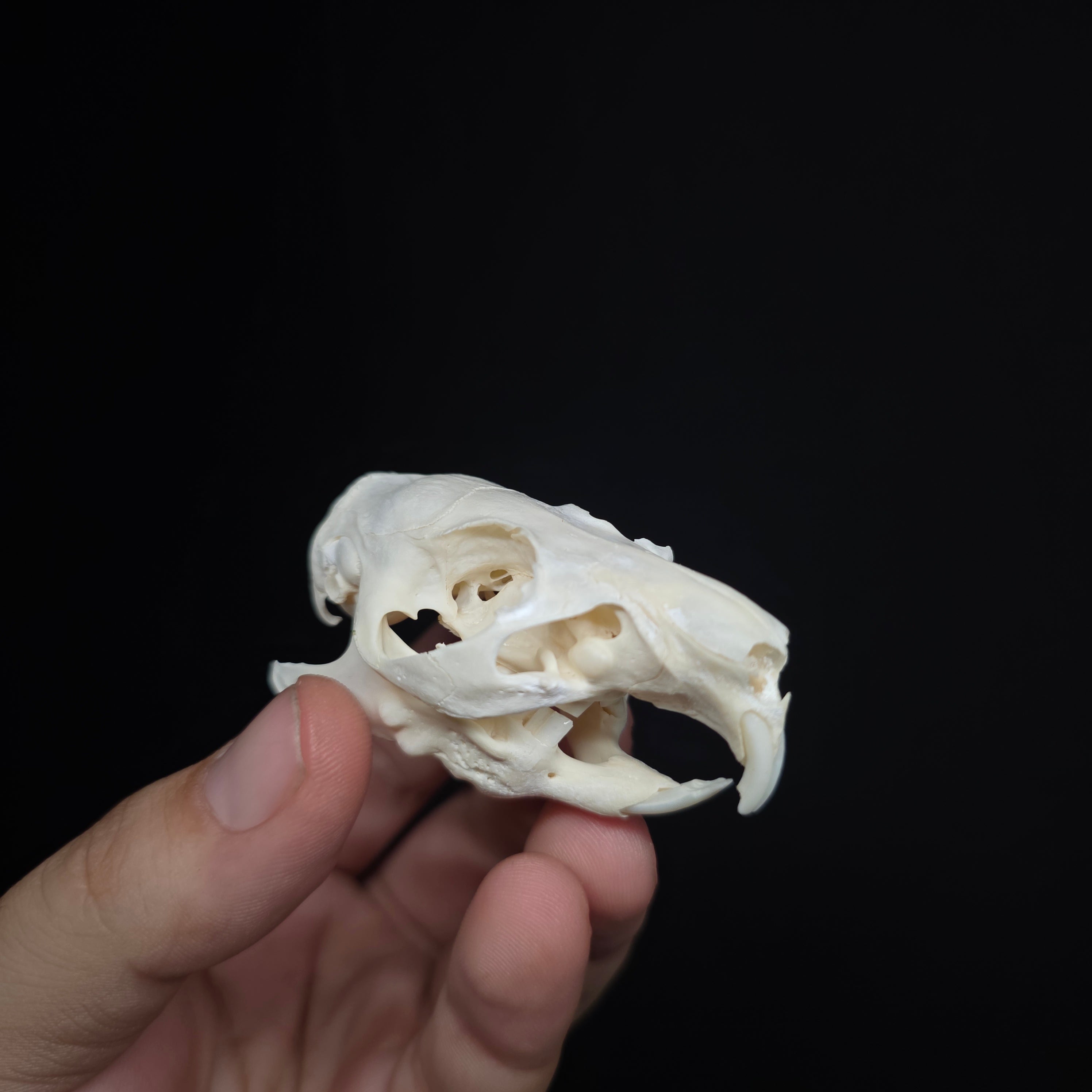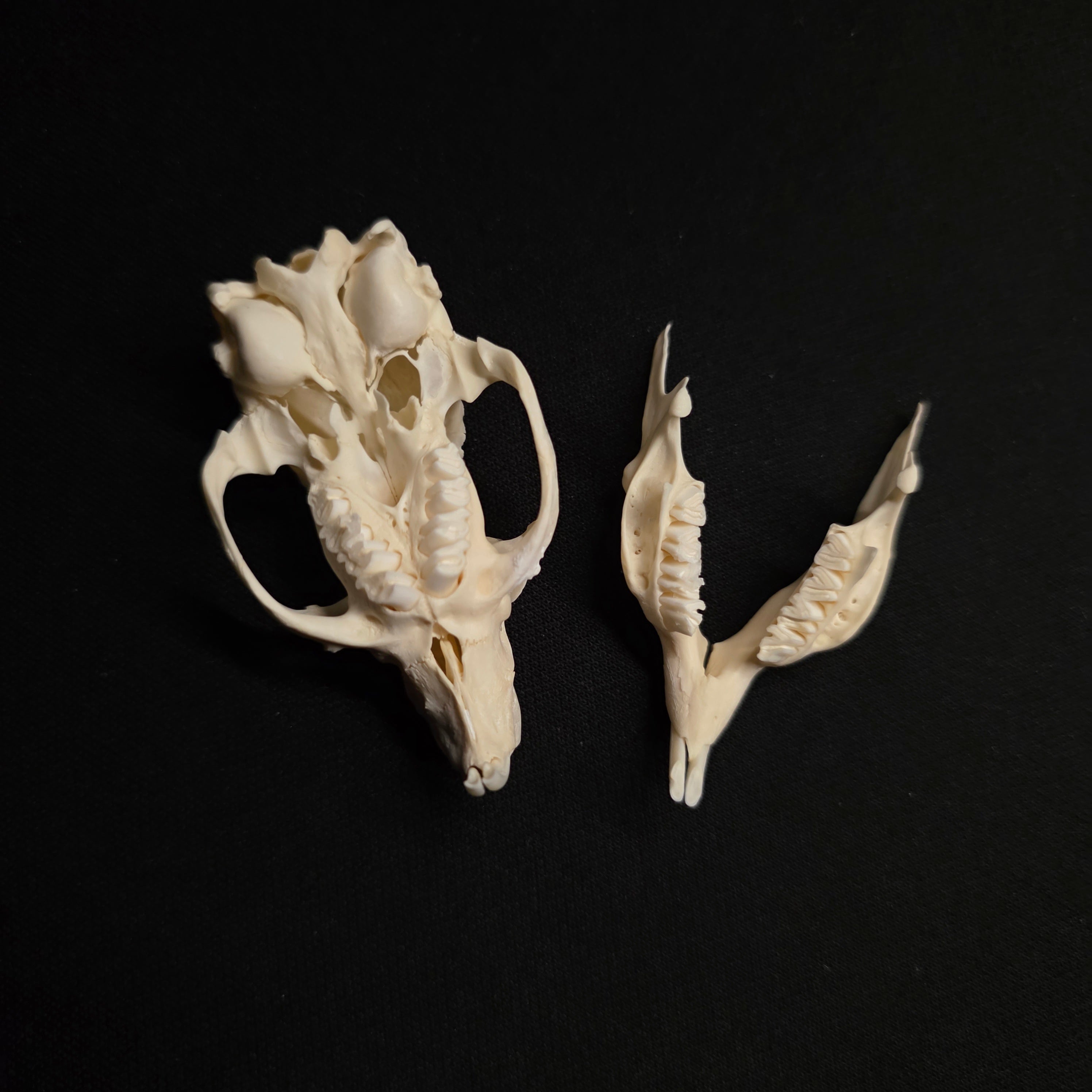 A nice big Guinea Pig skull. Has been degreased and whitened, and is complete with all teeth and no damage that I can see.