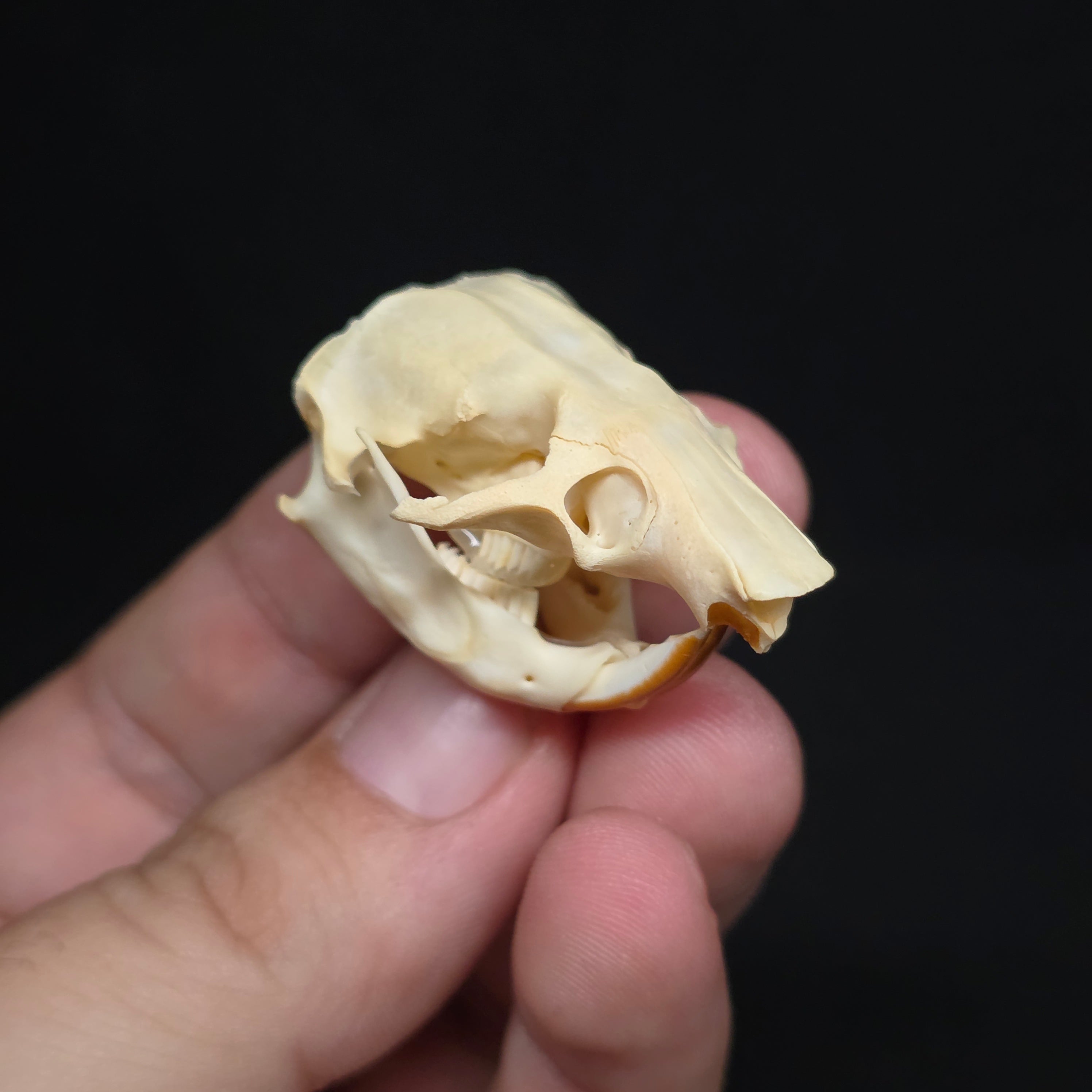 This particular skull is in pretty poor condition (see pictures for missing teeth, damage..etc). I've still degreased these guys, and they're a nice addition to a collection for someone looking for a cheap but rare species!