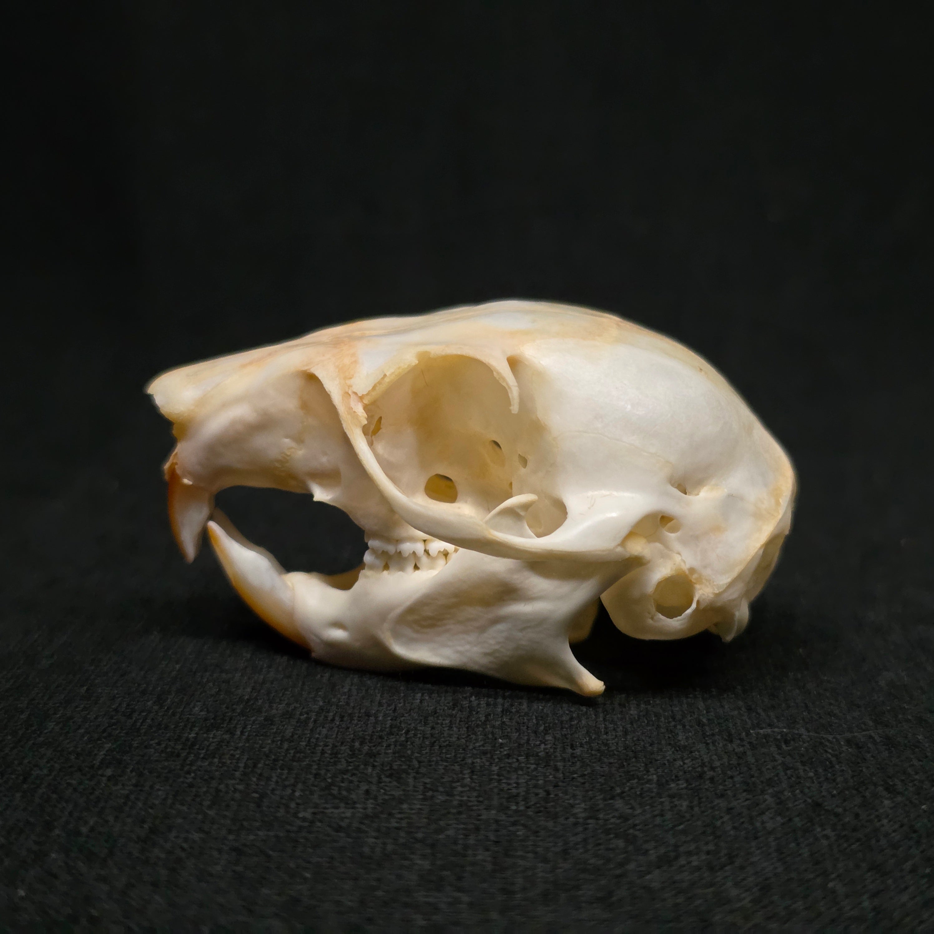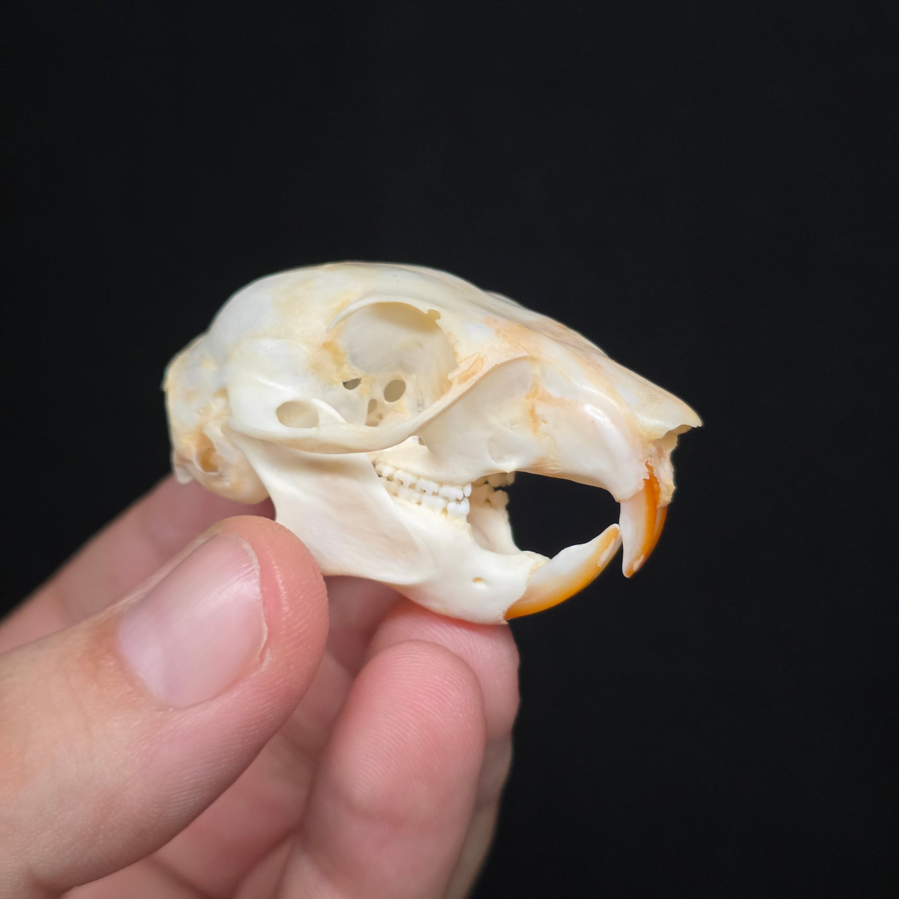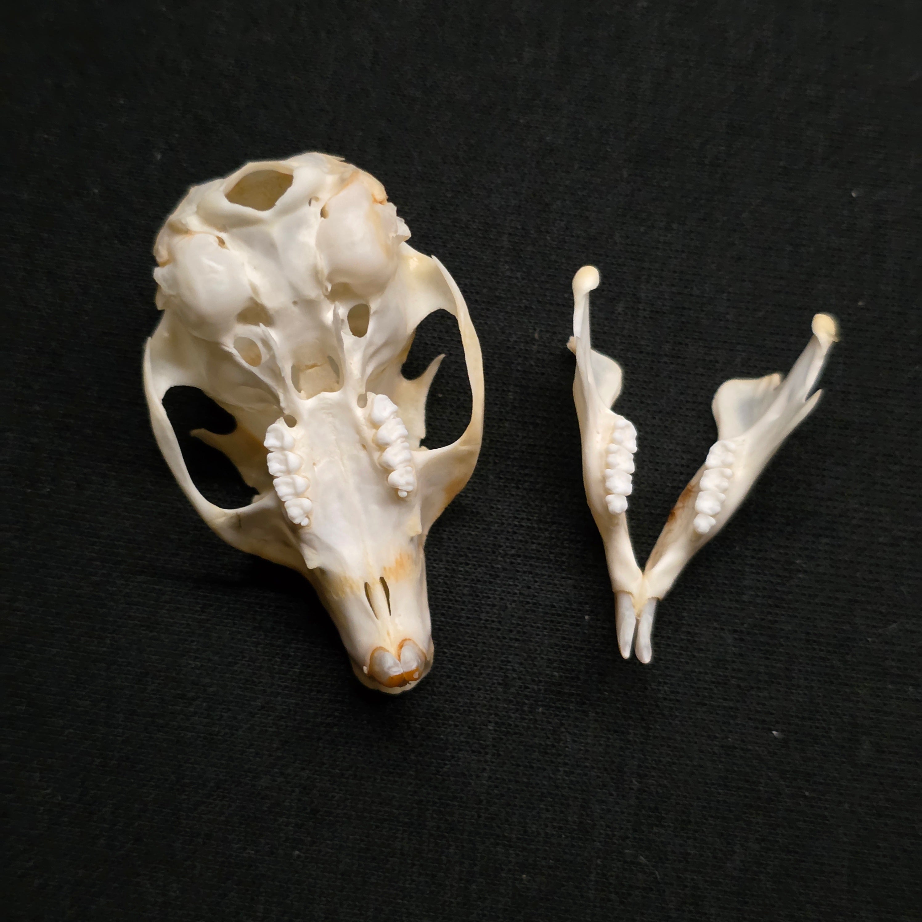 This one has been fully cleaned, but if you like your skulls with a bit of colour it has some staining from blood as it was originally beetle cleaned