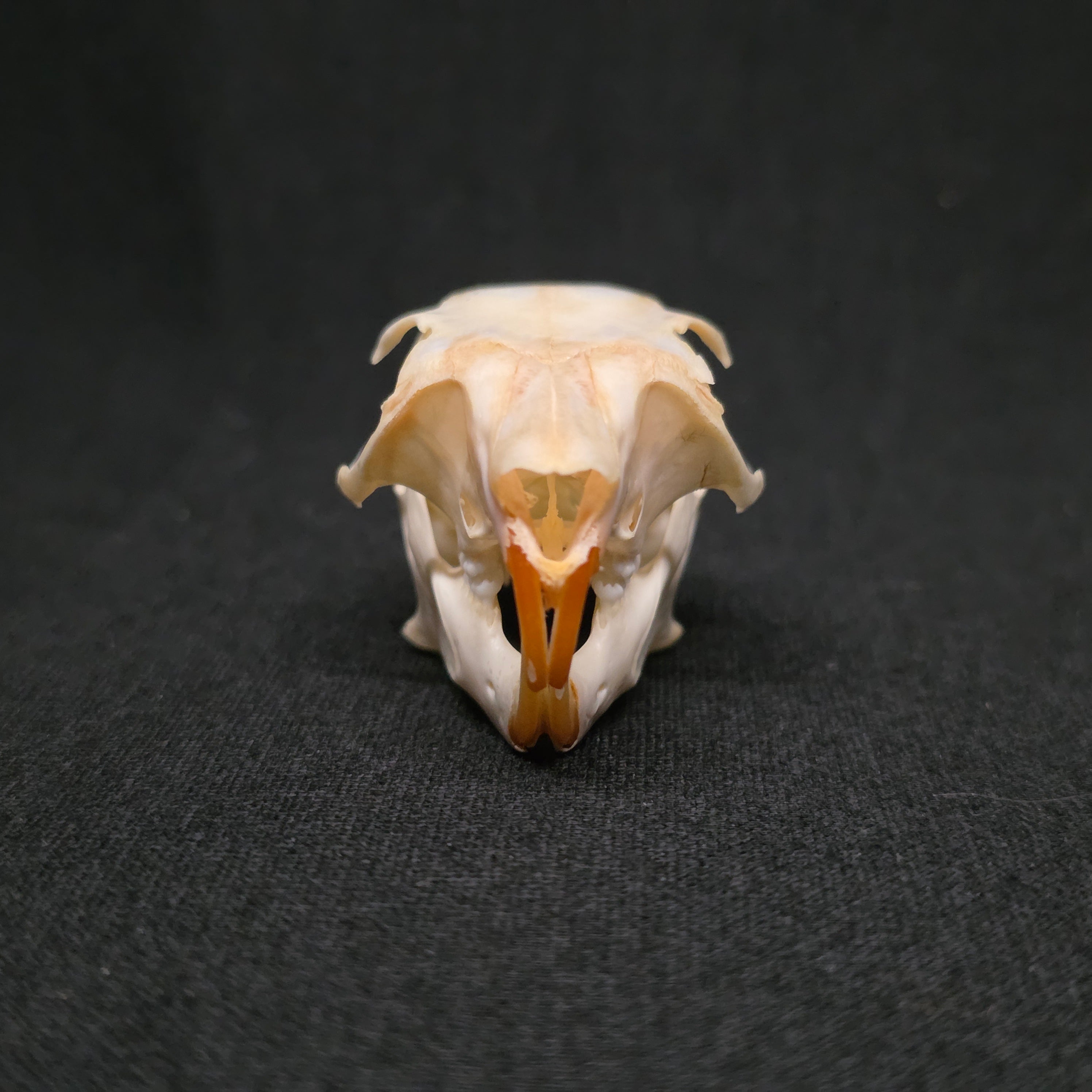 A nice and big Eastern Gray Squirrel skull. Nice and clean and complete with all teeth. Degreased with ammonia and whitened with perixide
