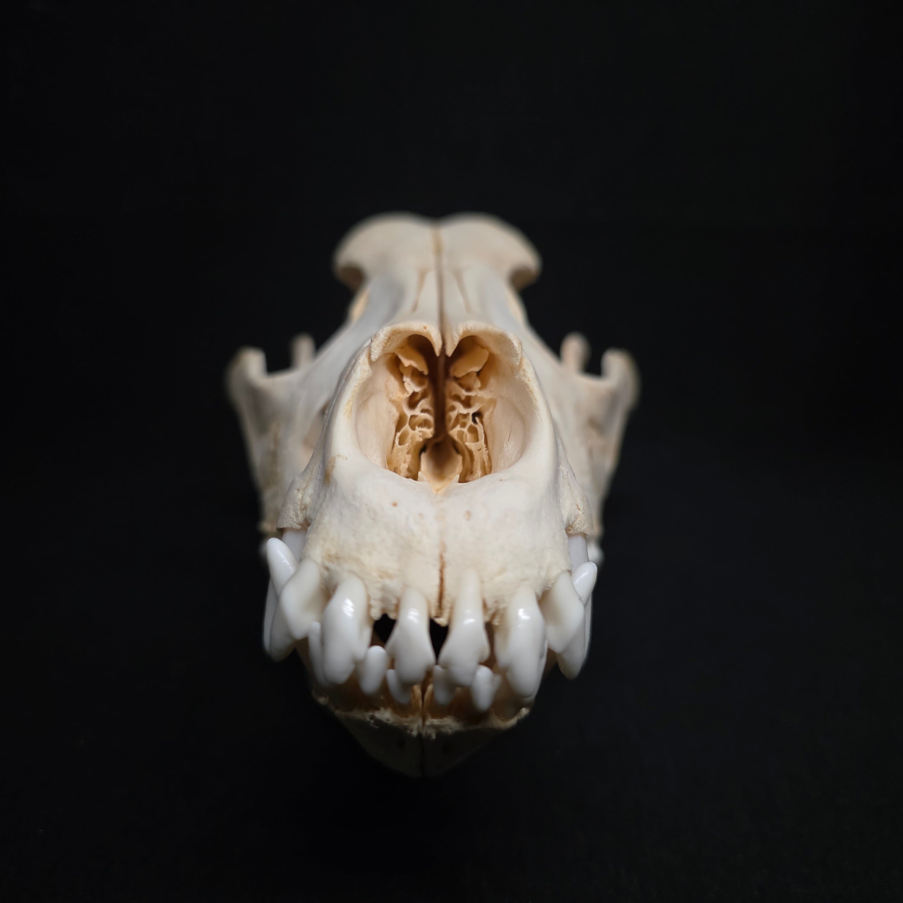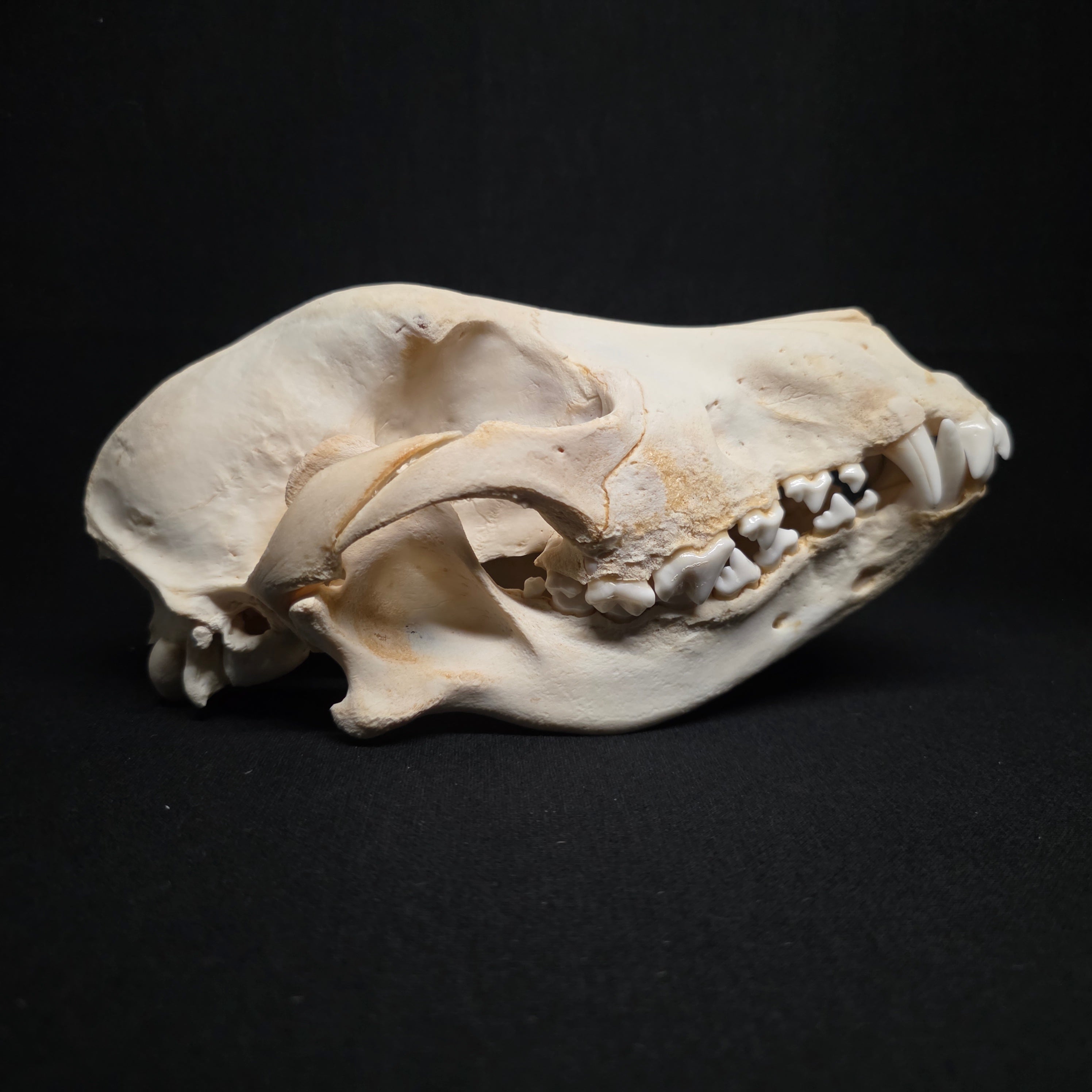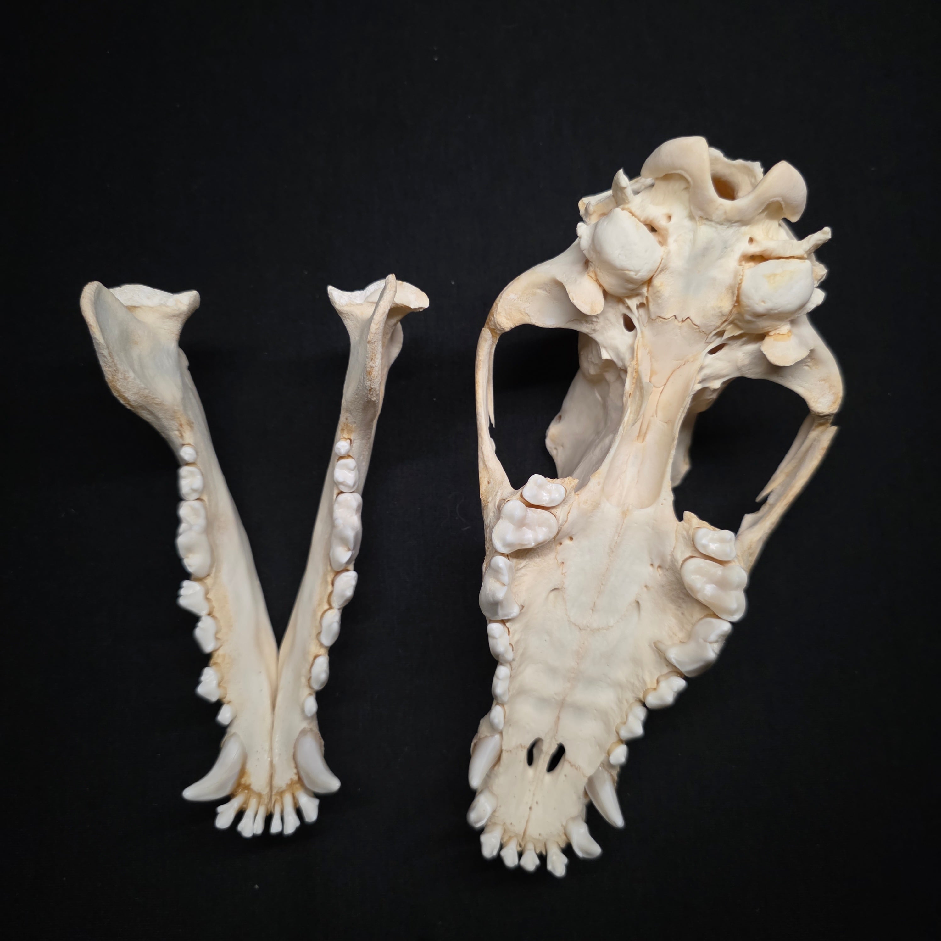 This skull has been beetle cleaned, degreased and whitened, and is complete with perfect dentition
