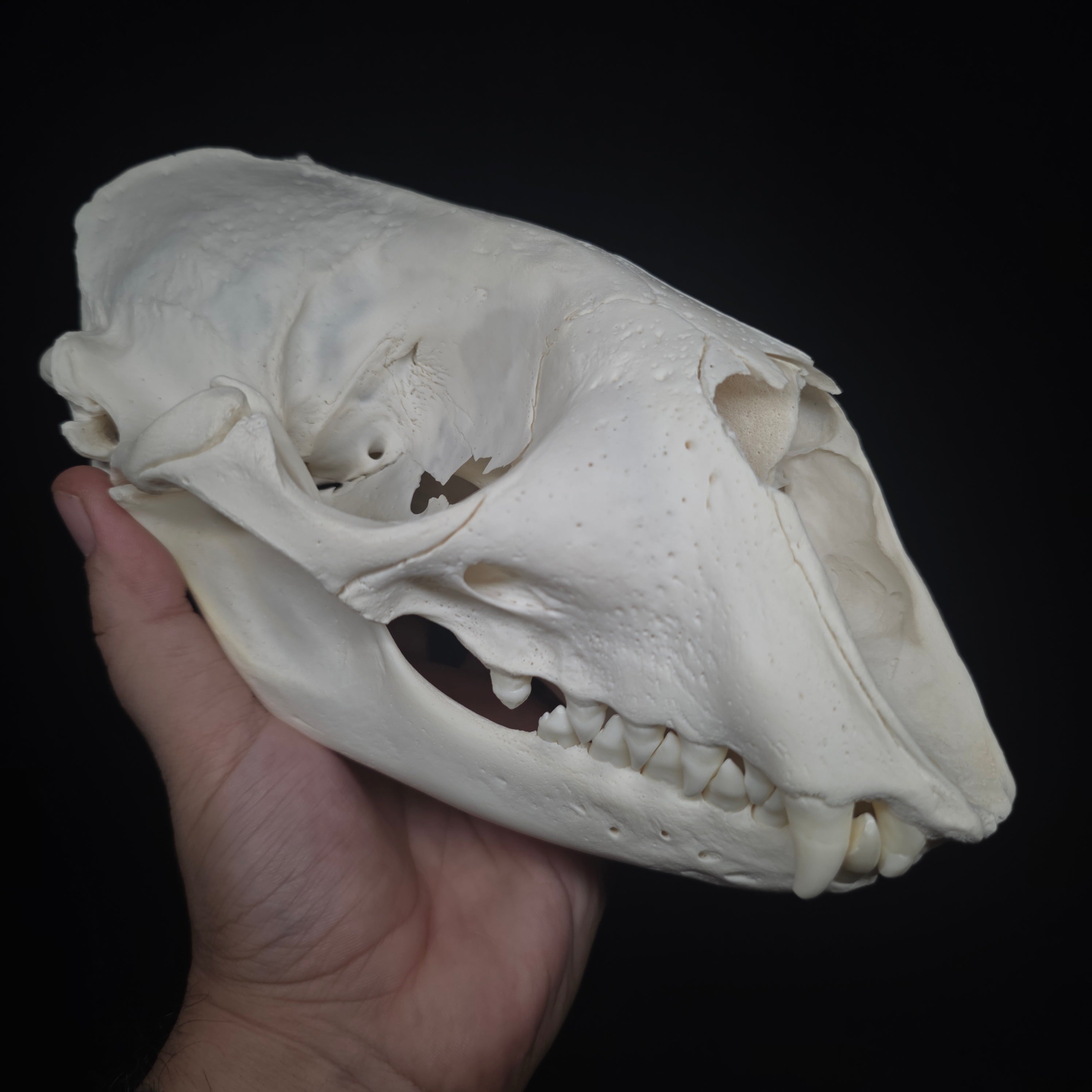 A beautiful, huge female Grey Seal. Has been completely and thoroughly degreased and whitened, and has its intact nasal turbinates, as well as perfect dentition. There's a tiny ding on its nose, but nothing noticeable.