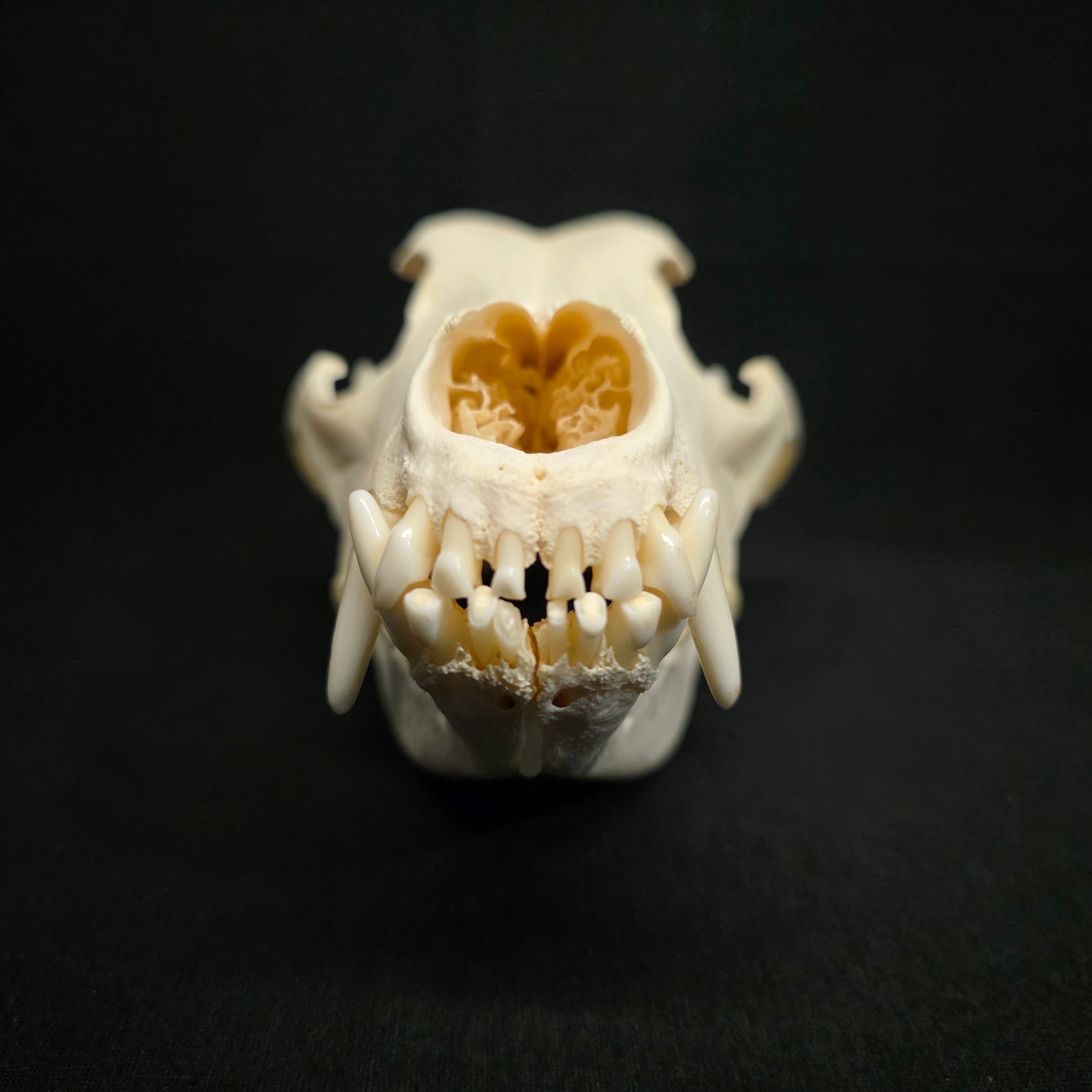 And absolutely fantastic, old Swiss Shepherd skull. This one has all teeth, nasal turbinates, and is nice and degreased!