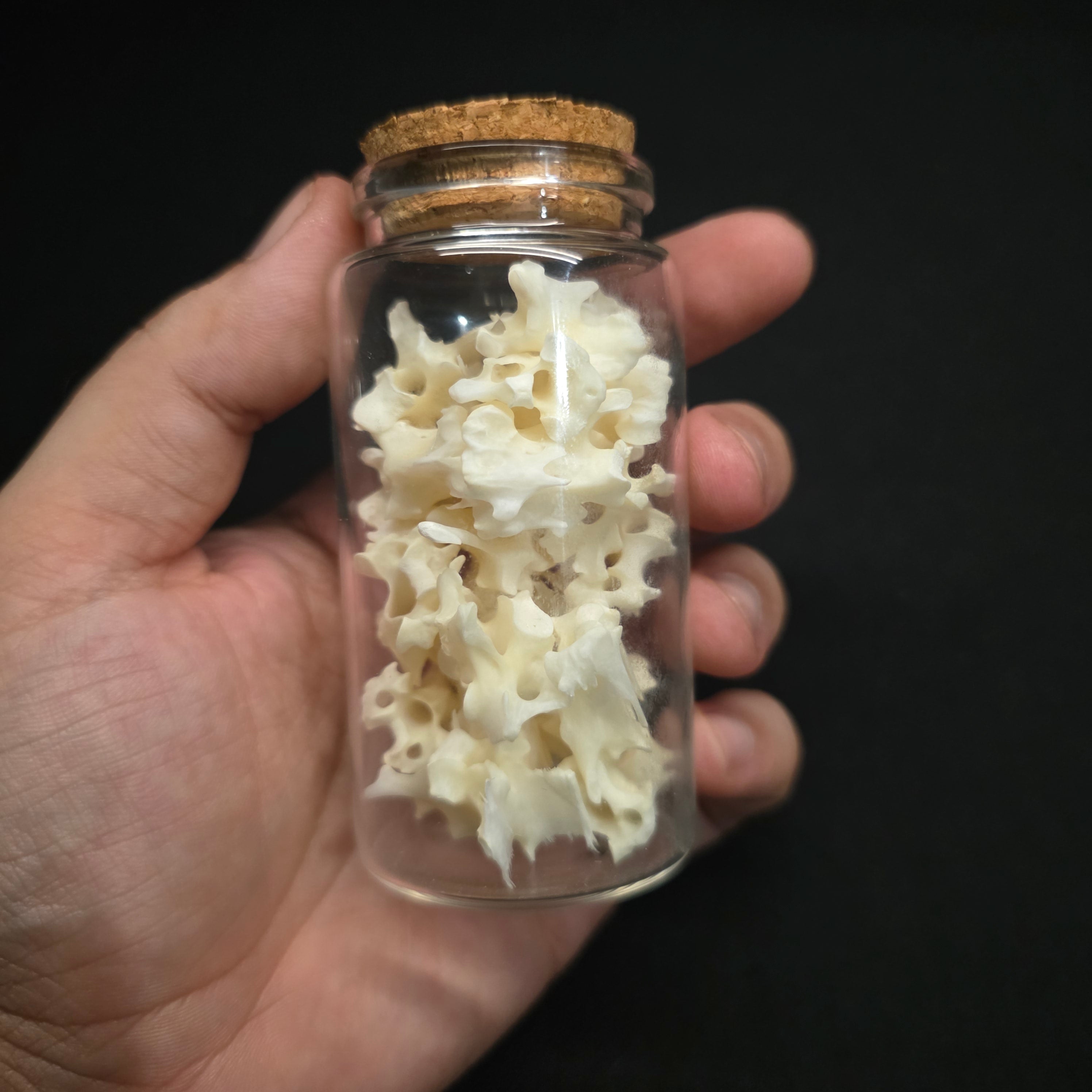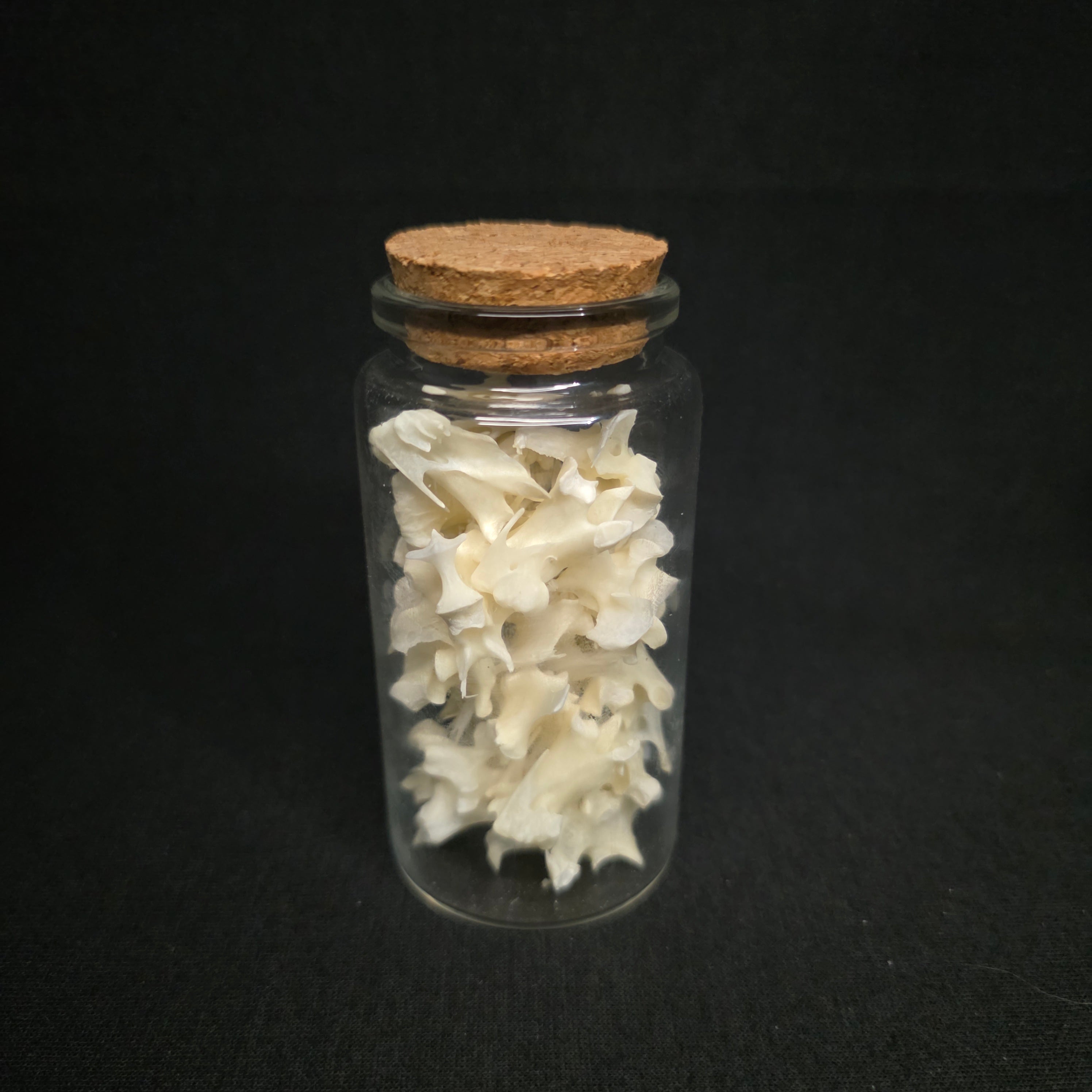 Large vial absolutely packed full of large bird vertebrae. These are all a mix from a rooster and a duck.