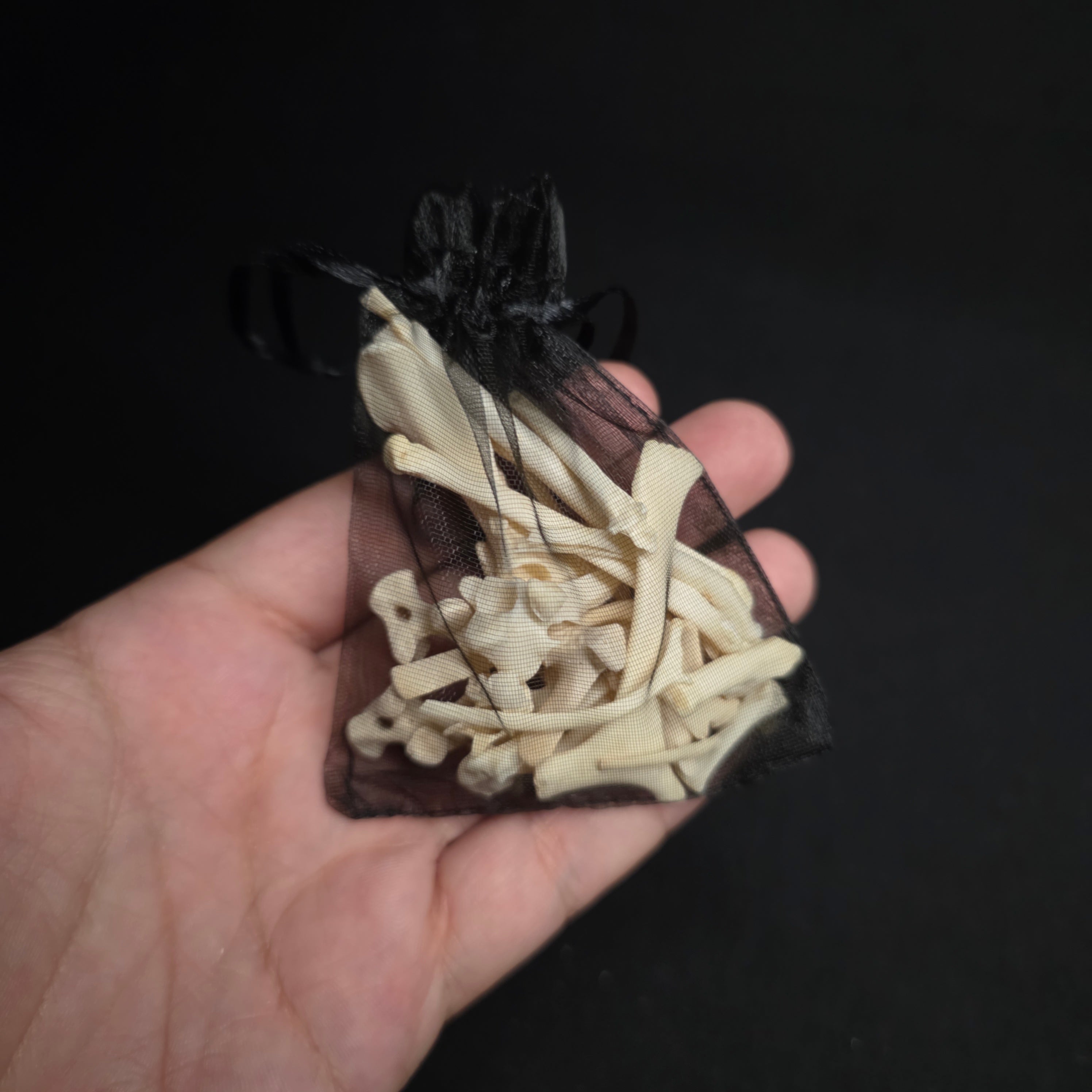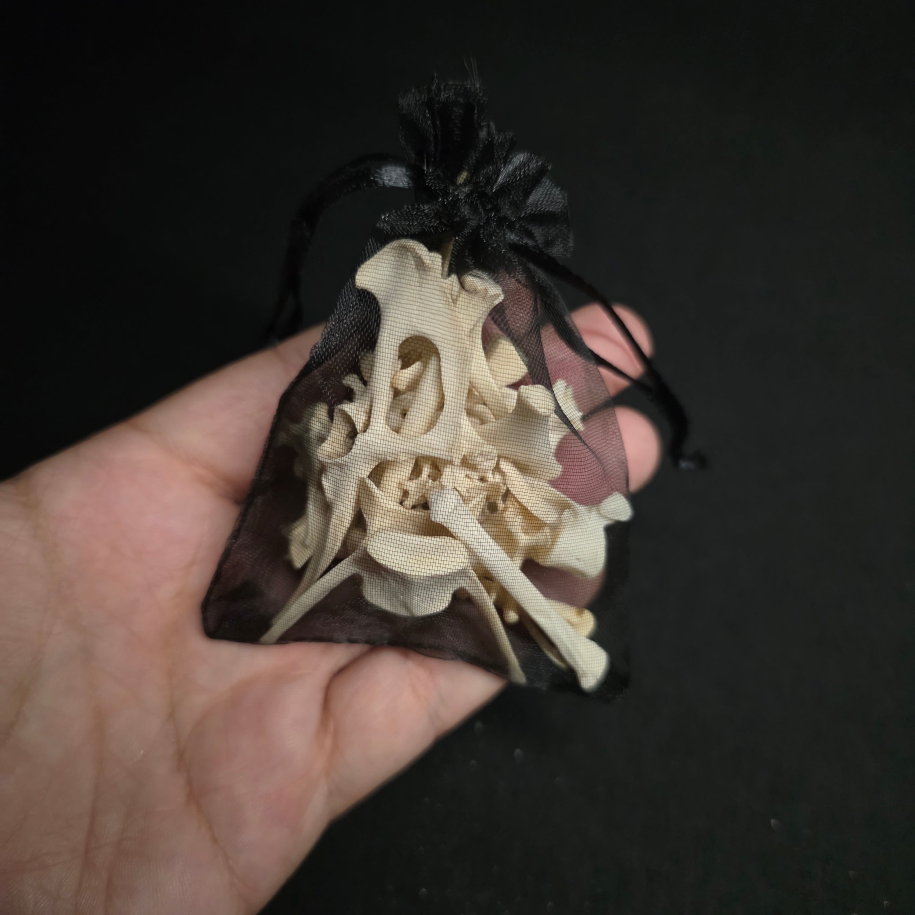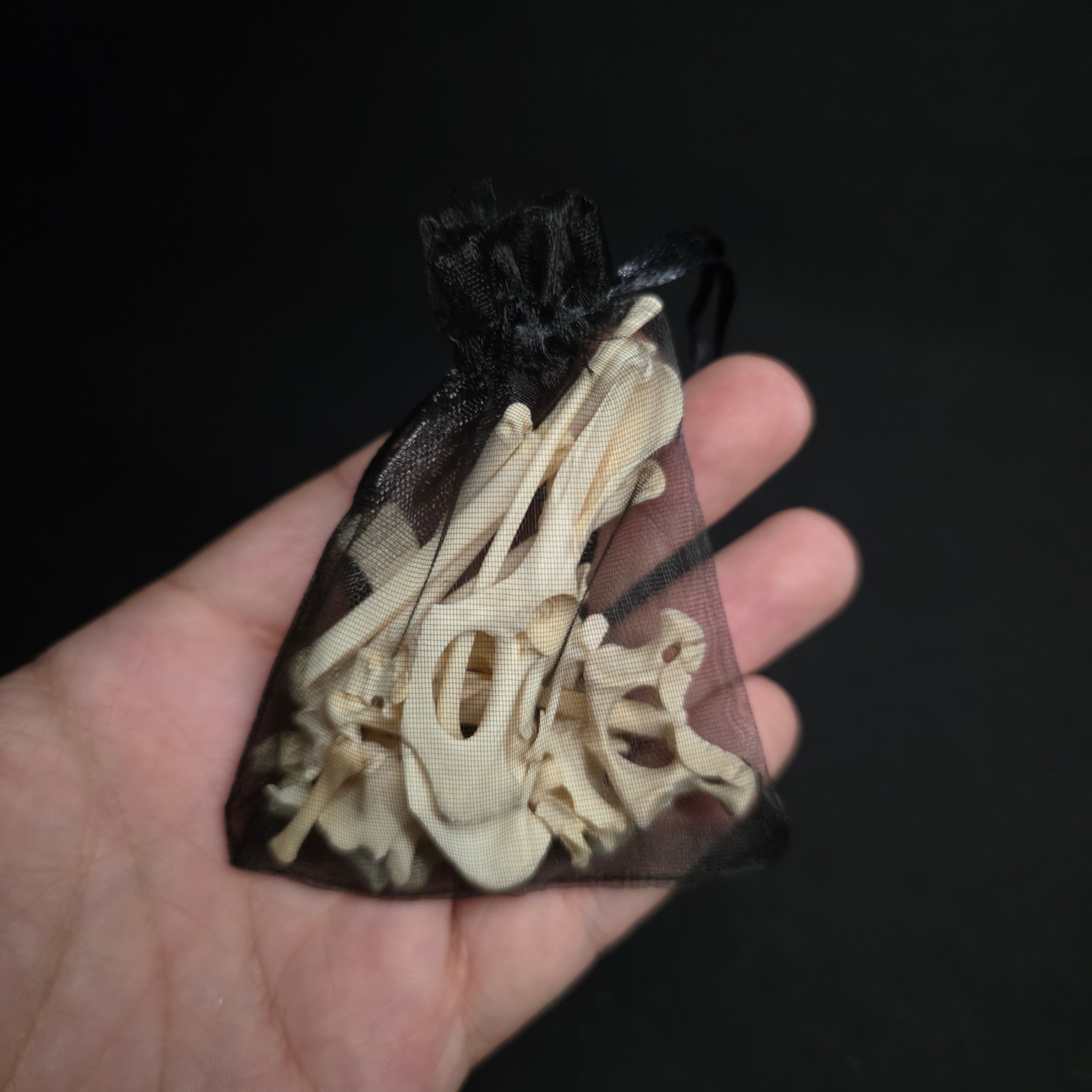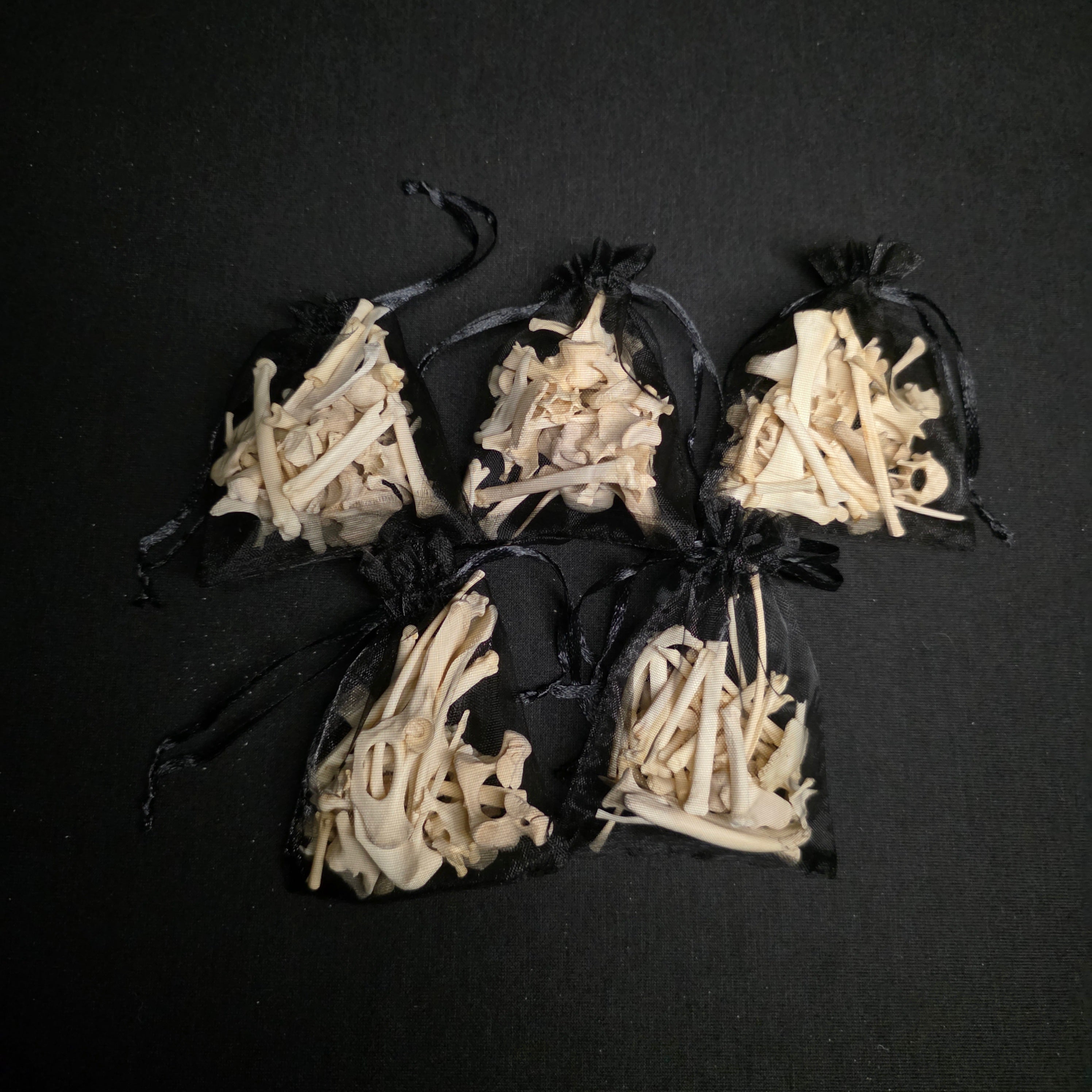 Each bag is unique, but there's a nice mix of smaller bones in each one including stuff like skull fragments and pelvises.